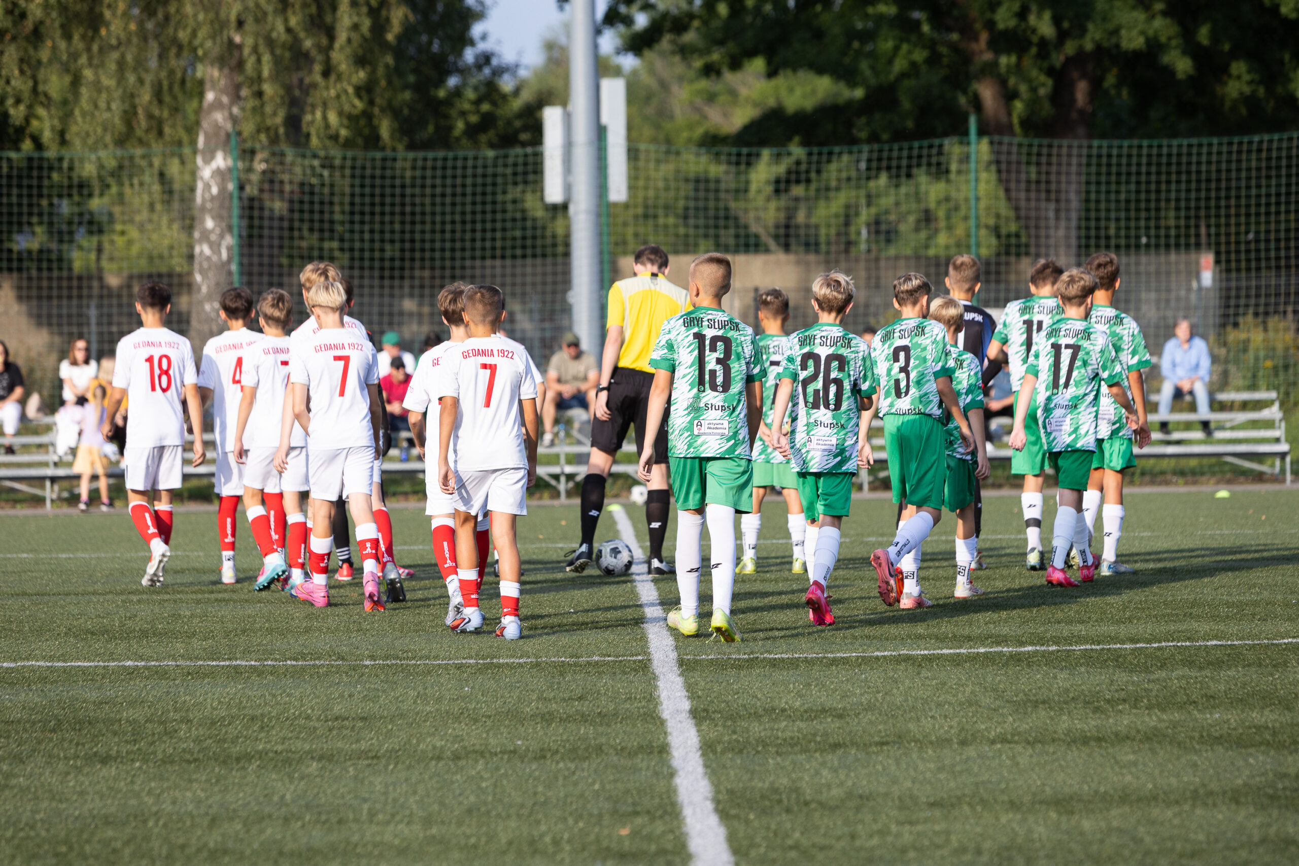Spotkanie nie należało do najłatwiejszych ani najbardziej widowiskowych. Drużyna z Gdańska często przerywała akcje gospodarzy nieczystymi zagrywkami, a liczne faule wytrącały z rytmu zawodników Gryfa i utrudniały płynną grę. Pomimo trudnych warunków młodzi piłkarze ze Słupska pokazali charakter, cierpliwość i wolę walki, dzięki czemu zdołali wywalczyć cenny punkt.